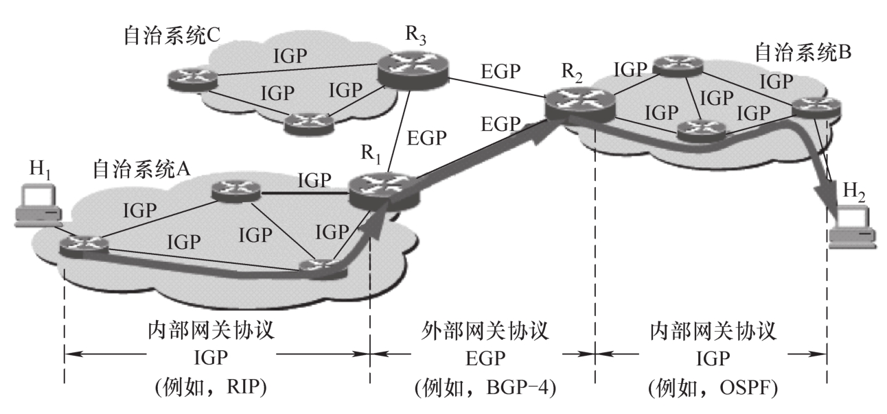 由于因特网的规模非常大,如果让所有的路由器都知道所有的网络应怎样到达,则这种路由表将非常大,并且这些路由器之间交换路由信息所需的带宽会使因特网的通信链路受限而饱和。因此,因特网将整个网络划分为许多较小的自治系统(Autonomous System, AS)。一个自治系统是一个运营商经营和管理的广域网(或城域网)。自治系统最重要的特点就是有权自主决定在本系统内应采用何种路由协议。一个自治系统内的所有网络都属于一个行政单位(如一个公司、一所大学、政府的一个部门等)来管辖。