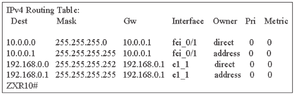 · 下一跳地址(Gw):与承载路由表的路由器相邻的路由器的端口地址,有时也把下一跳地址称为路由器的网关地址。