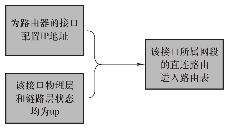 所谓直连路由,是指到达与路由器直接相连网络的路径信息。直连路由是由链路层协议发现的,一般指去往路由器的接口地址所在网段的路径,该路径信息不需要网络管理员维护,也不需要路由器通过某种算法进行计算获得,只要该接口处于活动状态(Active),路由器就会把通向该网段的路由信息填写到路由表中去,如图3-2所示。
