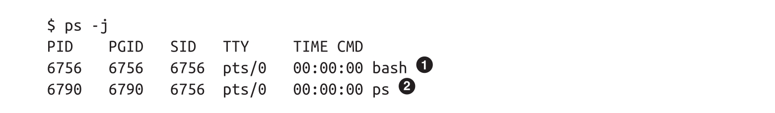 ❷ps进程的PID/PGID 6790和shell的SID相同。