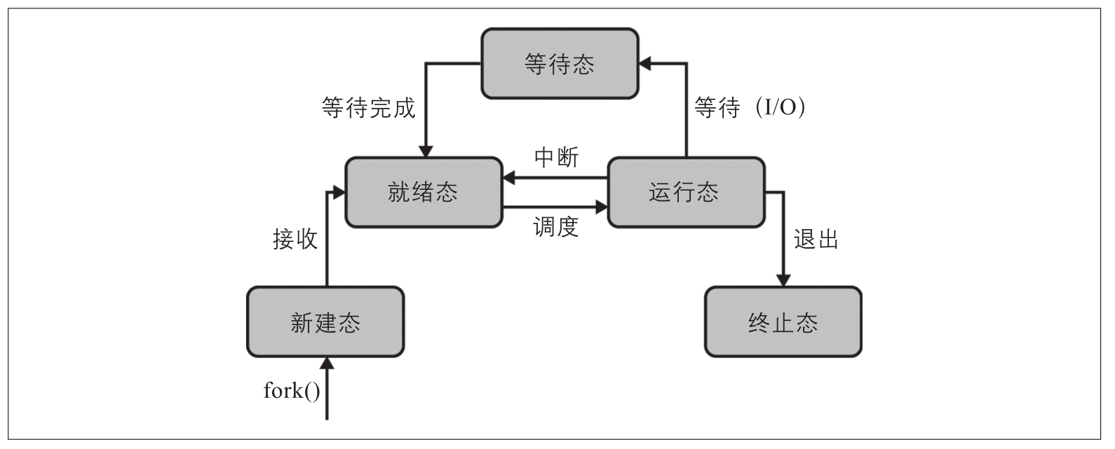 我们在前面提到过,在Linux中,任务数据结构有一些与调度相关的信息。这意味着在任何给定的时间,进程都处于某种状态,如图2-2所示。
