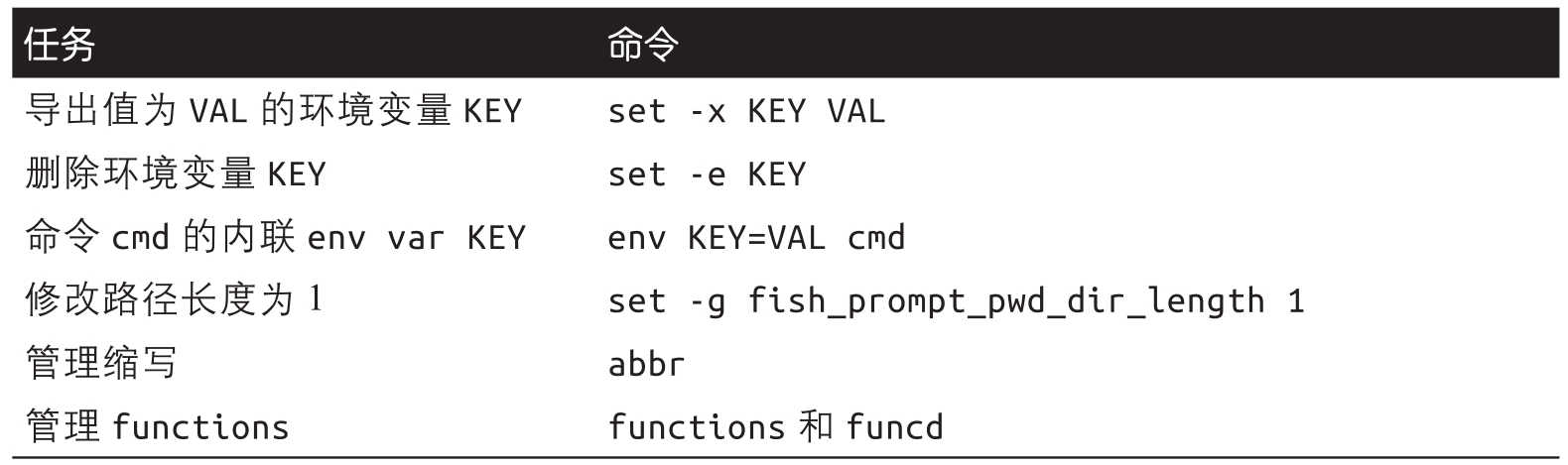 常用的fish命令如表3-3所示。在这种情况下,要特别注意环境变量的处理。