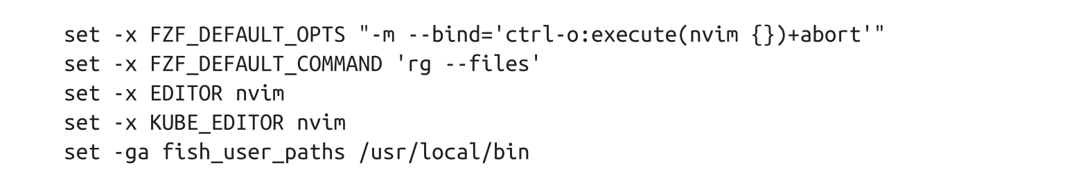 现在让我们看看如何配置环境。事实上,我的配置相当短,在 config.fish 中我有如下配置: