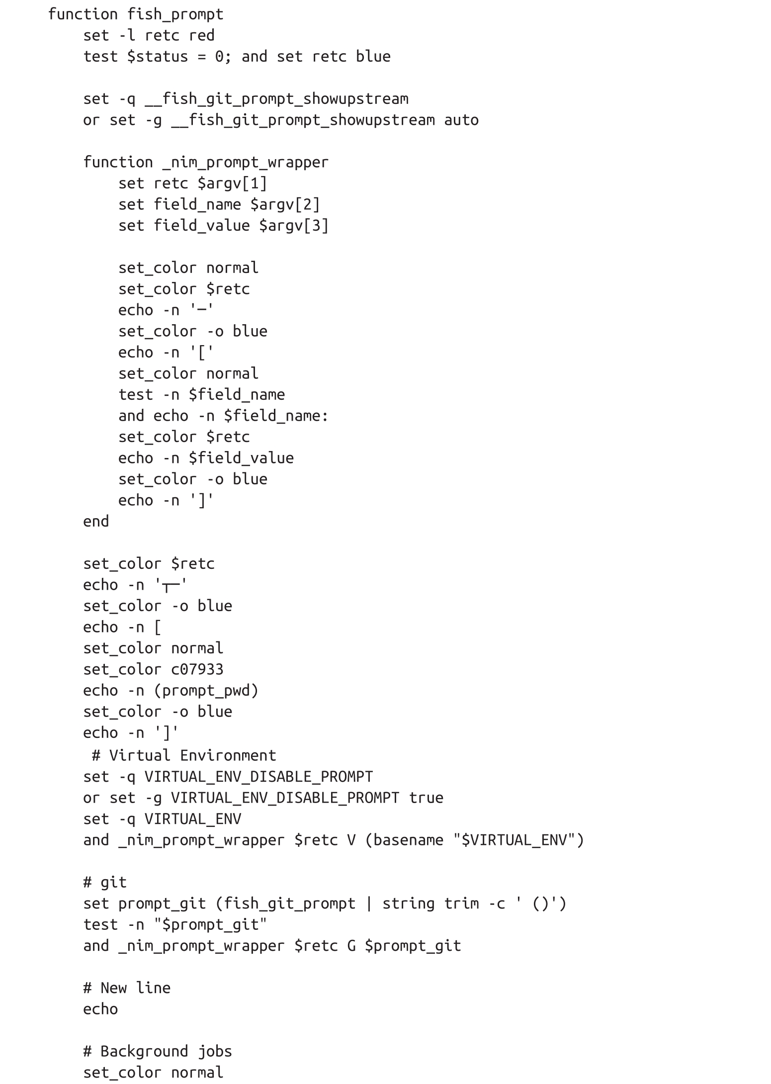 我的 fish_prompt.fish 中定义的提示是这样的: