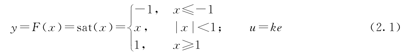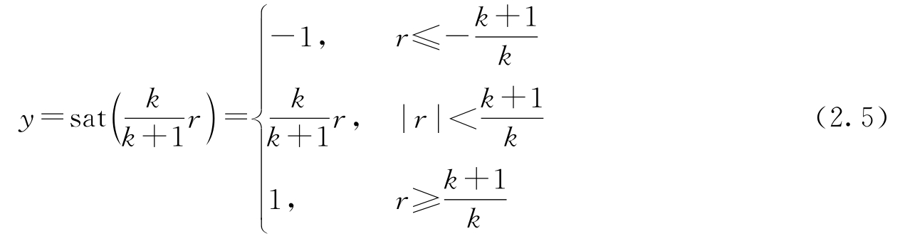 将过程 P 建模为这样一个函数:当输入的幅值小于1时,函数是线性的;当输入的幅值大于1时,函数具有饱和特性。控制器则建模为恒定的增益 k 。由此,过程和控制器表示为以下函数: