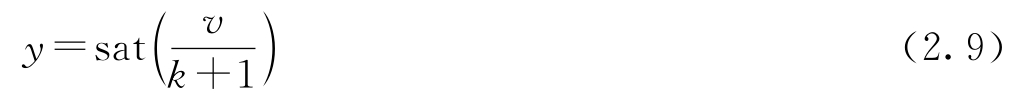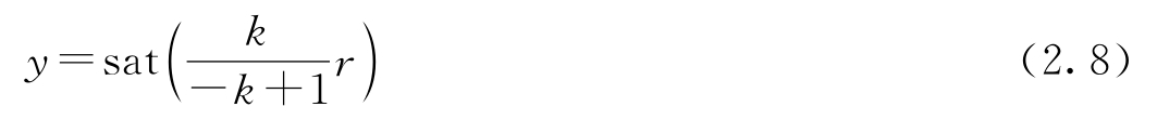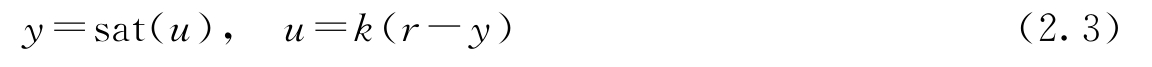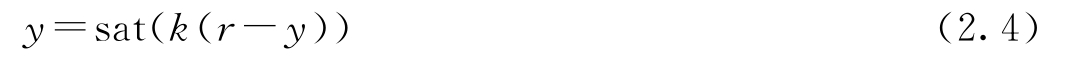 为了研究反馈对负载干扰的影响,考虑图2.1中具有负反馈的系统。为简单起见,将参考信号 r 设置为零。负载干扰 v 与输出 y 之间的关系为 y =sat( v-ky ),它是一个代数方程。在线性范围内,可得 y = v /( k +1),更一般地,可以证明: