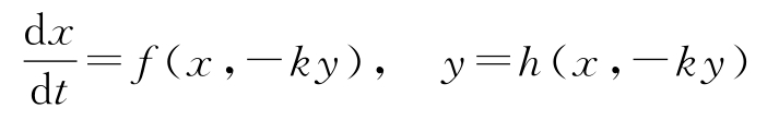 另一个模块为比例控制器,方程为 u = -ky 。由于函数 h 不依赖于 u ,因此没有直接连接。在这种情况下,只需简单地将式(3.21)中的 u 用 -ky = -kh ( x )来代替,就可以得到闭环系统的方程: