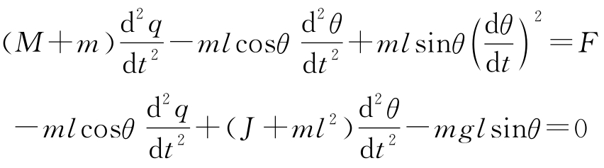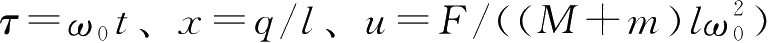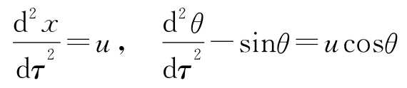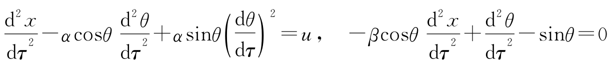 式中, α = m /( M + m ), β = ml 2 /( J + ml 2 )。请注意原来的模型有 m 、 M 、 J 、 l 和 g 这5个参数,但归一化的模型仅有 α 和 β 两个参数。若 M ≫ m 及 ml 2 ≫ J ,那么有 α ≈0和 β ≈1,因此模型可以近似表示为: