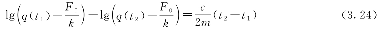 利用以上三个方程构成的方程组,可求解参数。对于图3.16所示的阶跃响应,可以确定出参数为 m ≈250 kg, c ≈60 N·s/m, k ≈40 N/m。