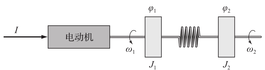 该系统可以代表电动机通过柔性轴驱动负载。假设电动机提供的转矩与电流 I 成正比,系统的动态可以用以下方程来描述