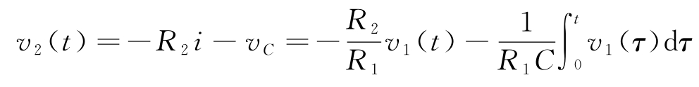 图4.10 由运放加反馈构成的PI控制器的电路图。电容用于存储电荷,表示输入的积分