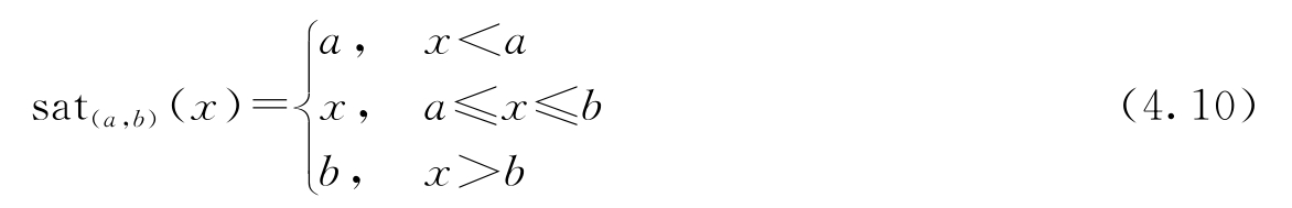 即在供电电压的范围内。采用图4.8所示的平滑函数来代替饱和函数,可以得到更精确的模型。对于小输入信号,式(4.9)的放大器特性是线性的: