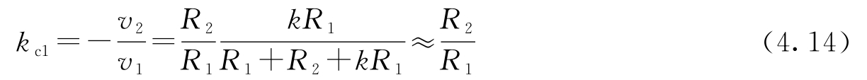 假定放大器运行在线性区,令式(4.11)中 v out = v 2 ,可得闭环系统的增益为: