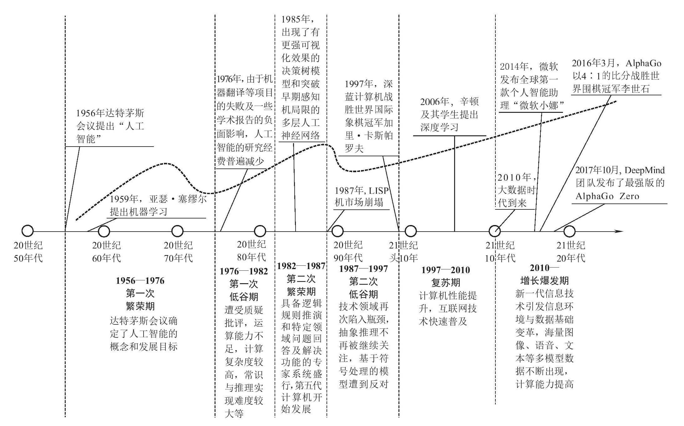 图1-1 生成式A I爆发之前,人工智能的发展时间轴