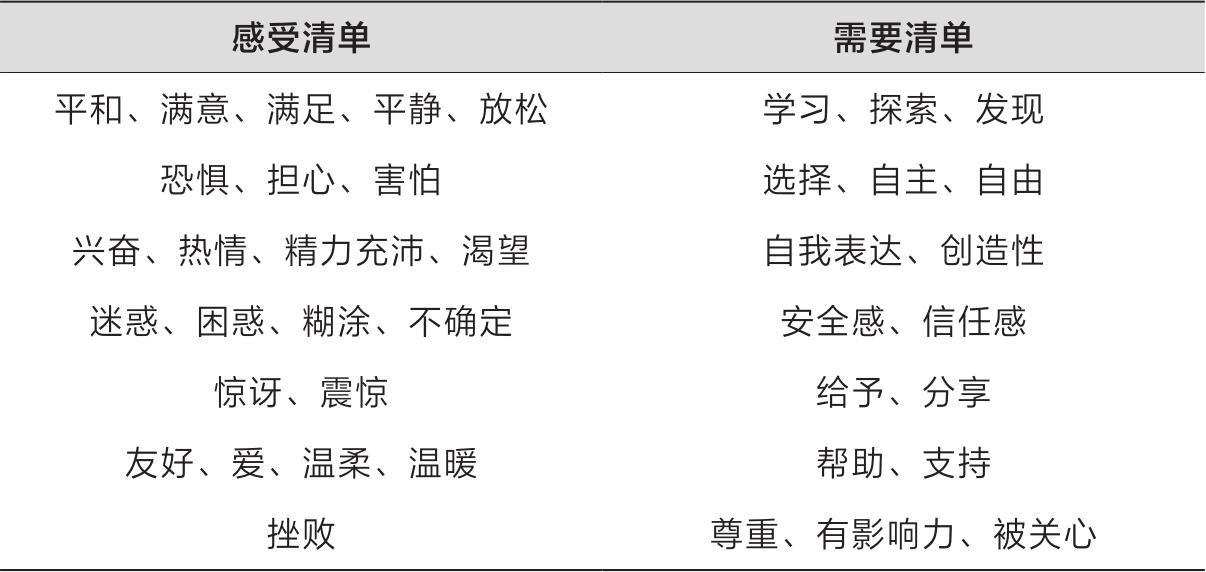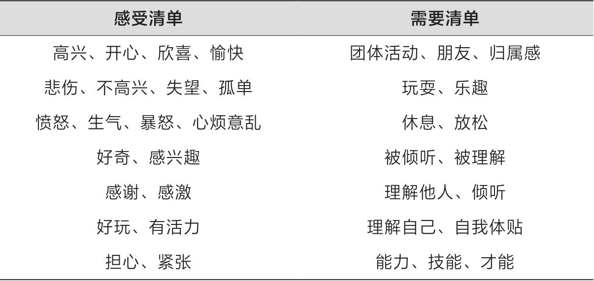 注意,这个清单只涉及我们的一部分感受和需要,你可以结合自己的经历不断丰富这个清单。