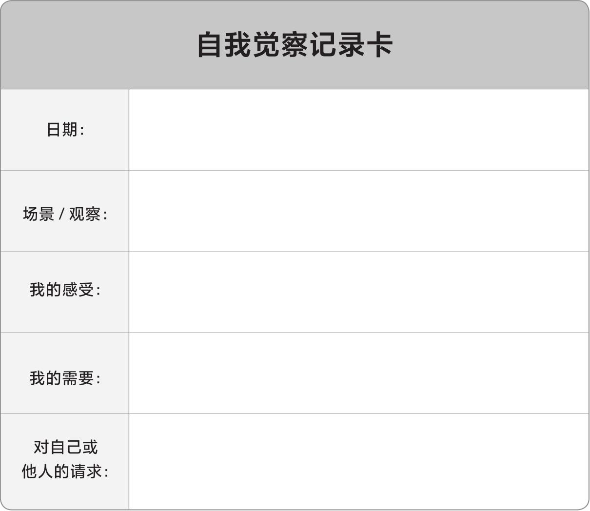 那么,该如何自我倾听呢?可以按照以下格式,通过填写自我觉察记录卡