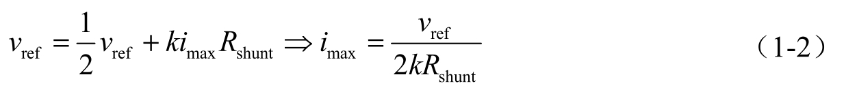 式中, k 为电流采样调理电路的放大倍数; R shunt 为电流采样电阻的阻值; i x 为流过电流采样电阻的电流(下标x表示对应电流和电压是未知的)。由于AD口的电压最大值为参考电压,因此采样电流的最大值 i max 满足