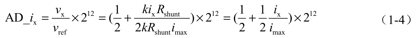 假设电流采样所用的AD采样模块是12位的,那么电流 i x 通过时对应的AD采样值AD_ i x 为
