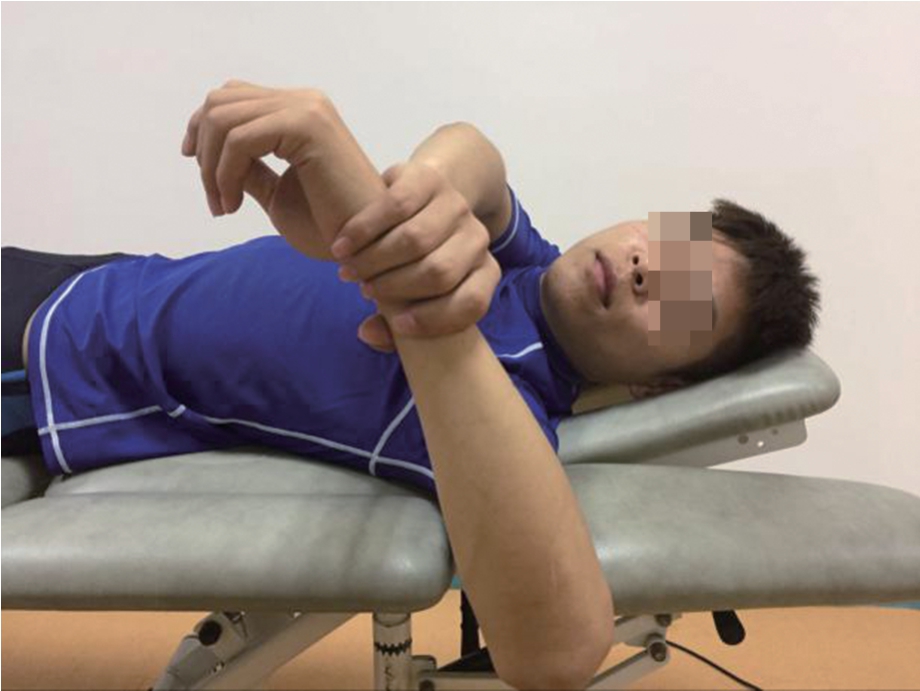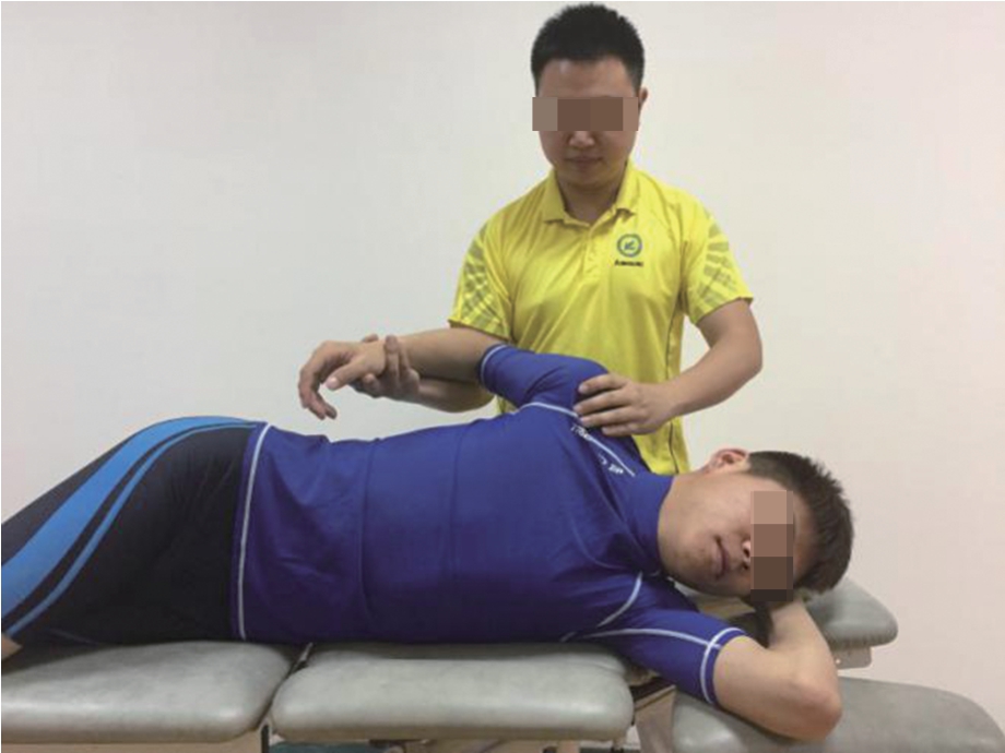 (1)患者体位:患者仰卧位,起始位可以是肩前屈90°或外展90°(图6-2-7)。