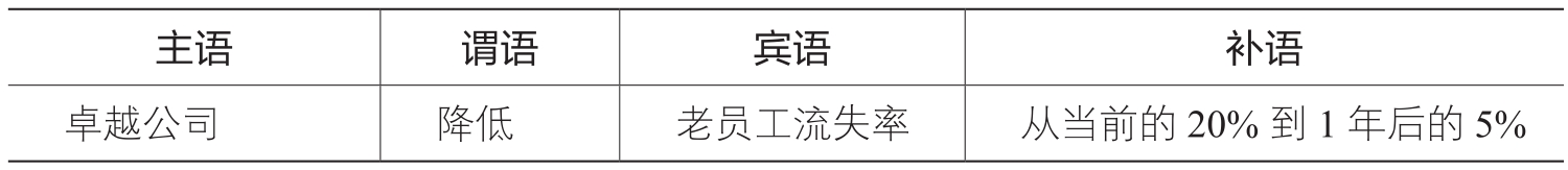 确定了衡量目标的指标后,如何衡量目标呢?我们通常建议使用“主、谓、宾、补”的格式对问题进行衡量,如表1-4所示。