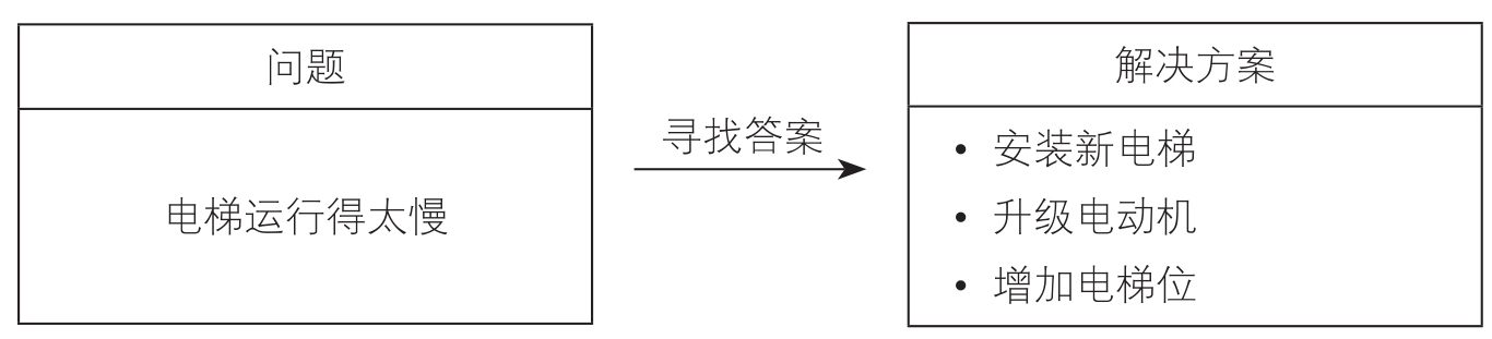举个例子。小张经常抱怨公司的电梯运行得太慢,导致她经常迟到,希望公司能够解决这个问题。小张提出的问题如图1-3所示。