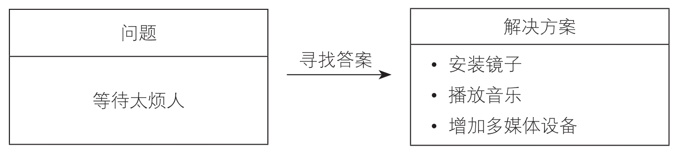 你是不是觉得这些解决方案的代价很高(无论是金钱代价还是时间代价)?而且即使付出代价,也不一定能够解决小张的问题。这是典型的拿现象当问题的案例。可能你会说,真问题是“等待的时间长,大家都很不耐烦”。按照这个问题的解决思路,可能的解决方案如图1-5所示。