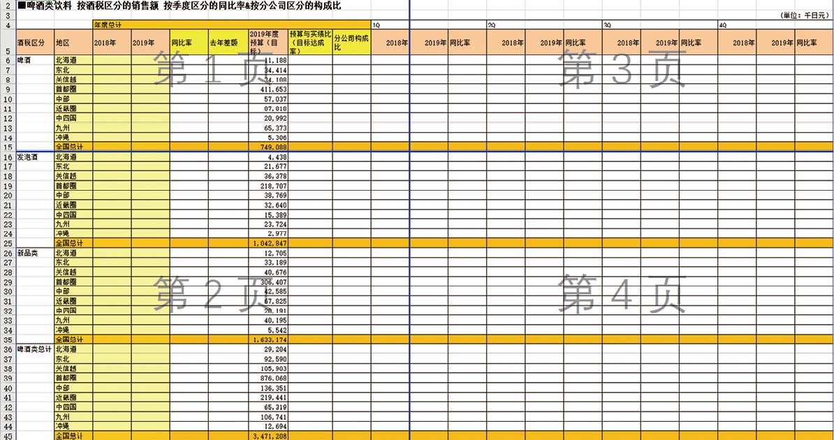 可以看到,蓝色虚线就是转换页面的地方,这样直接打印的话,这张表将被打印在4页纸上。