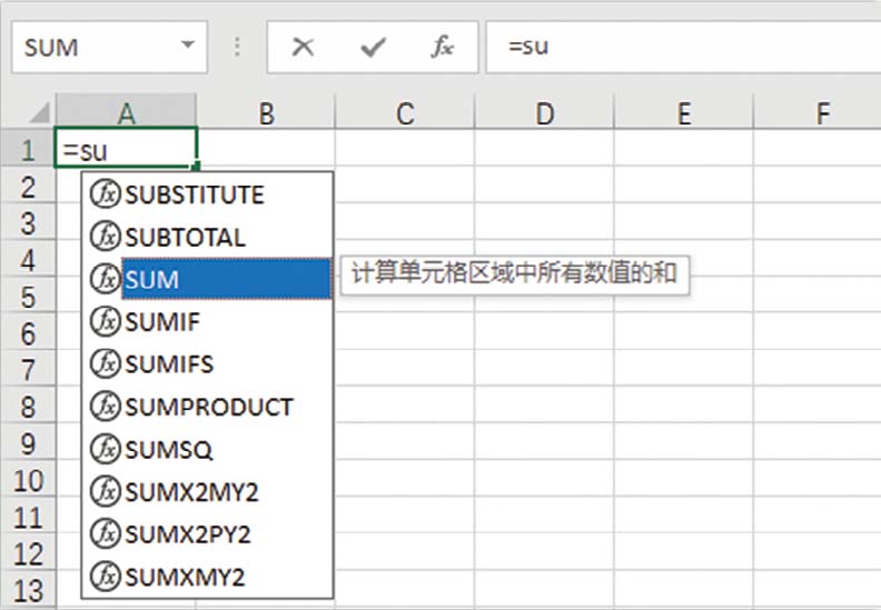 Excel 2007之后的版本中,在输入函数的过程中会出现候补名单,运用TAB键即可快速输入函数。在此以SUM函数为例,请大家看一下输入函数的具体步骤。