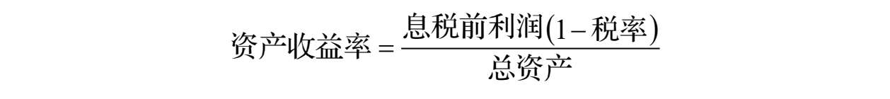 息税前利润是利润表中衡量营运利润的会计指标,总资产是依会计准则(多数资产使用的是账面价值)计算得出的资产总额。资产收益率也可以用如下公式表示: