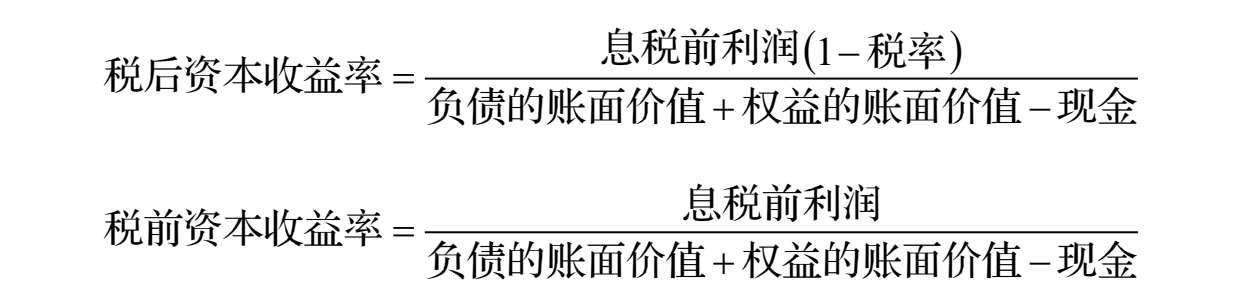 另一种收益计算方法是将公司的经营利润与所投入资本相结合,这里的资本被定义为负债和所有者权益账面价值之和。这就是我们所说的资本收益率(ROC)。当公司的相当一部分负债是流动负债(如应收账款)或无利息负债时,这个方法能更好地衡量在经营过程中所投入资本的真正收益率。
