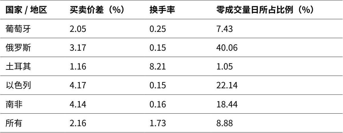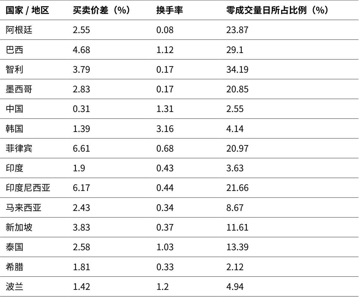 资料来源:H. Zhang,“Measuring Liquidity in Emerging Markets”(working paper, National University of Singapore, 2010)。