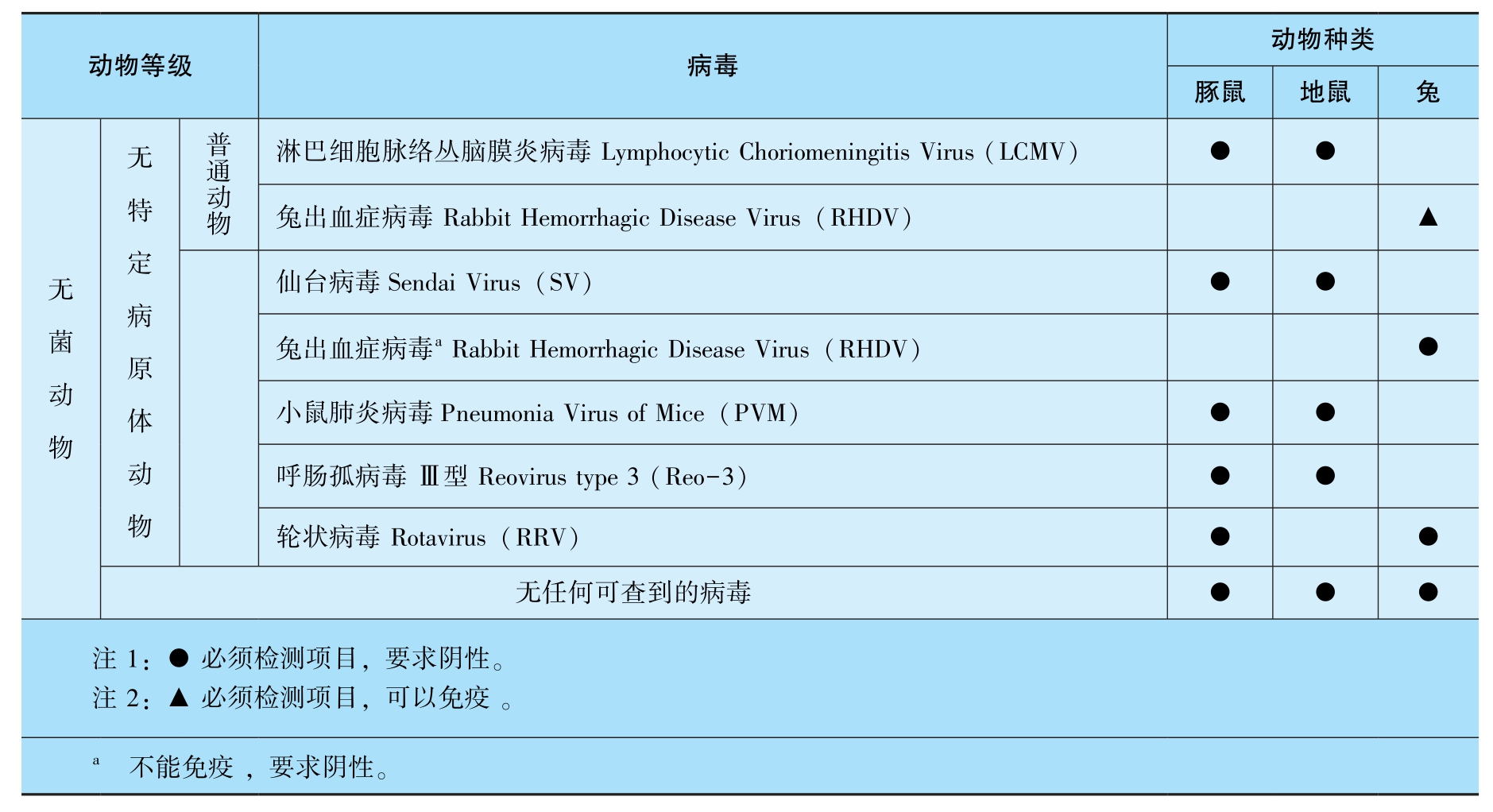 表3-6 豚鼠、地鼠、兔病毒检测项目