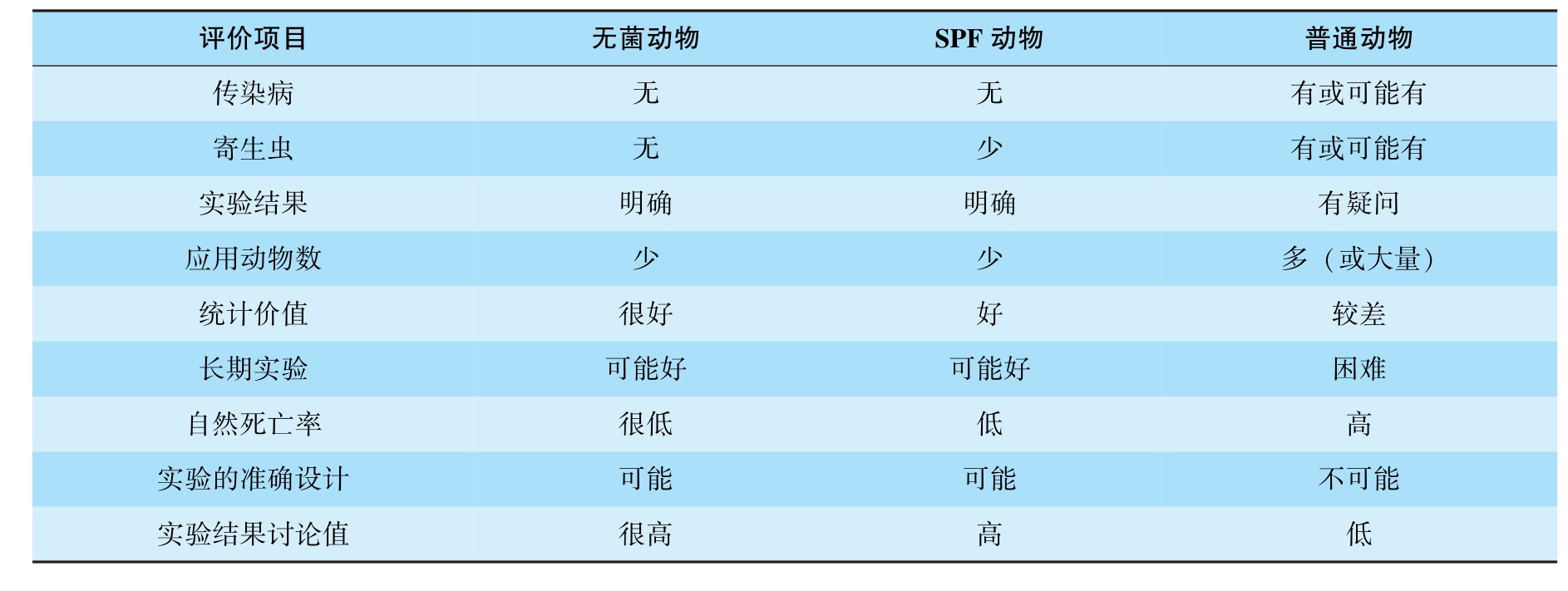 表3-1 不同等级实验动物特点的比较
