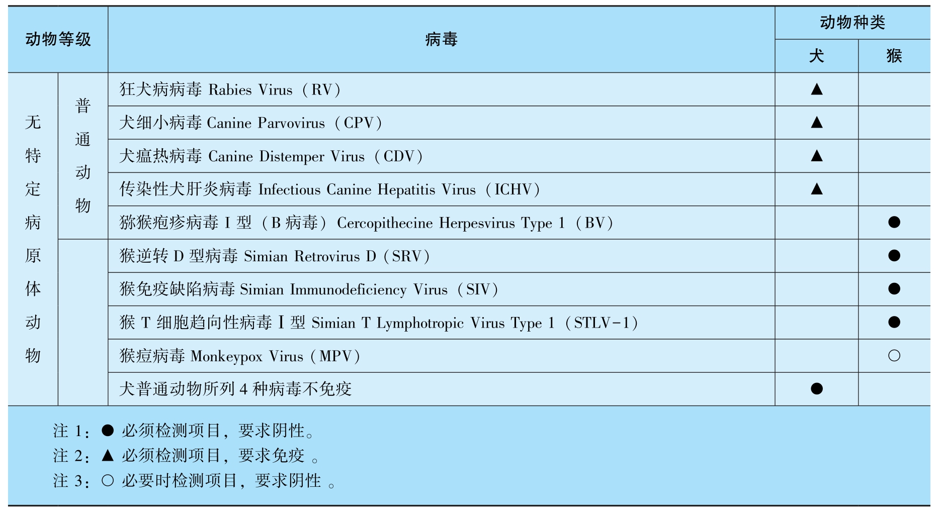 表3-7 犬、猴病毒检测项目