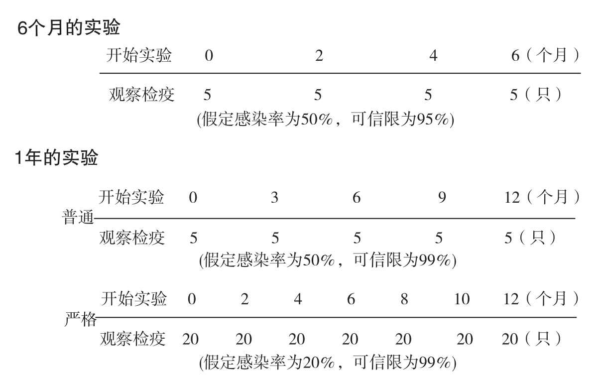 图3-1 长期动物实验时的微生物学监测例子