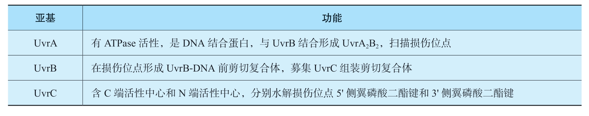 表2-7 大肠杆菌K-12株切除核酸酶UvrABC