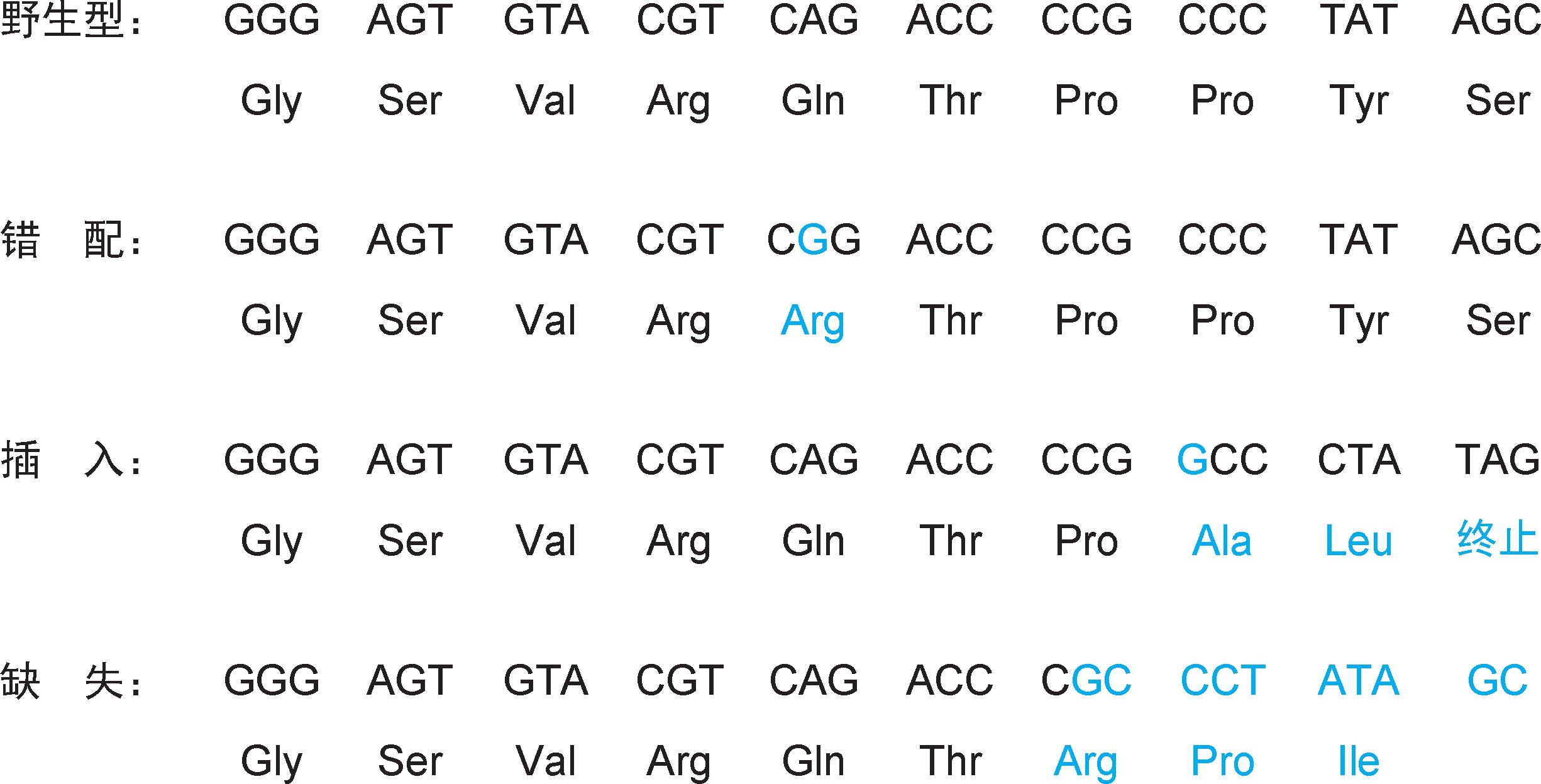 由一个碱基对的置换或插入缺失所导致的突变统称 点突变 (point mutation)。如果编码区发生点突变,会导致遗传密码改变,有多种可能的结果。