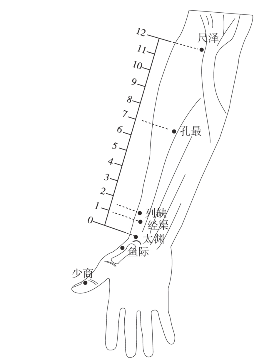 【主治】 ①咳嗽、气喘等肺系病证;②无脉症;③腕臂痛。
