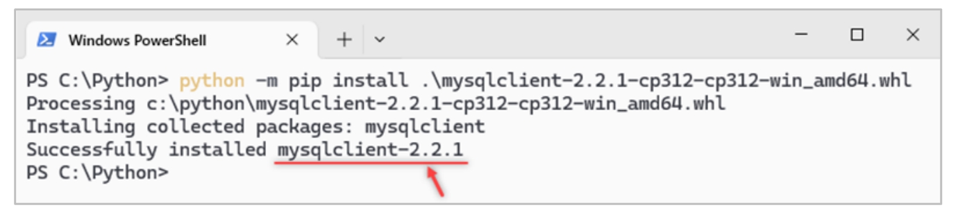 其实,除了pymysql驱动之外,还有一个mysqlclient驱动也非常受欢迎。安装mysqlclient驱动会相对麻烦一些,在线安装经常会出问题。不过,我们也可以将mysqlclient驱动包下载到本地进行安装,具体如图3.3所示。提示信息显示mysqlclient驱动安装已经成功了,相应的版本号为2.2.1。