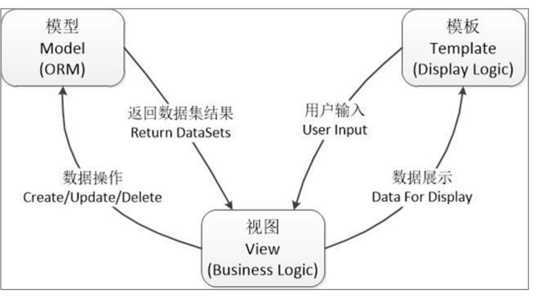 模板接收用户输入后交由视图去处理,视图负责连接模型进行数据操作,并将操作结果传递给模板进行展示,以上就是Django框架所设计的MTV模式的基本工作原理。