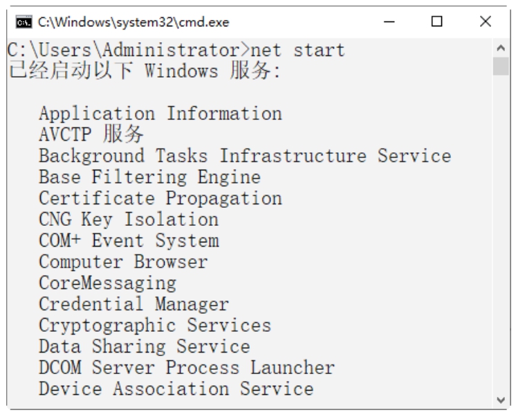 Step 02 按Enter键,则在打开的“命令提示符”窗口中可以显示计算机已启动的Windows服务,如图3-20所示。
