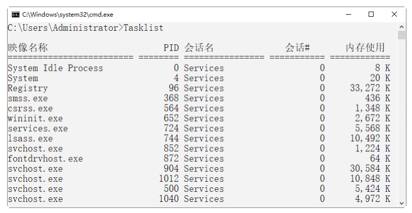 利用Tasklist命令可以查看本机中的进程及每个进程提供的服务。下面将介绍使用Tasklist命令的具体操作步骤。