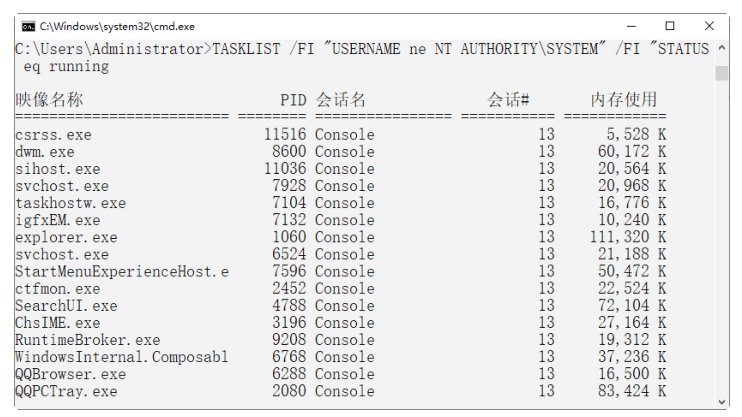 图3-30 列出系统中正在运行的非SYSTEM状态的所有进程