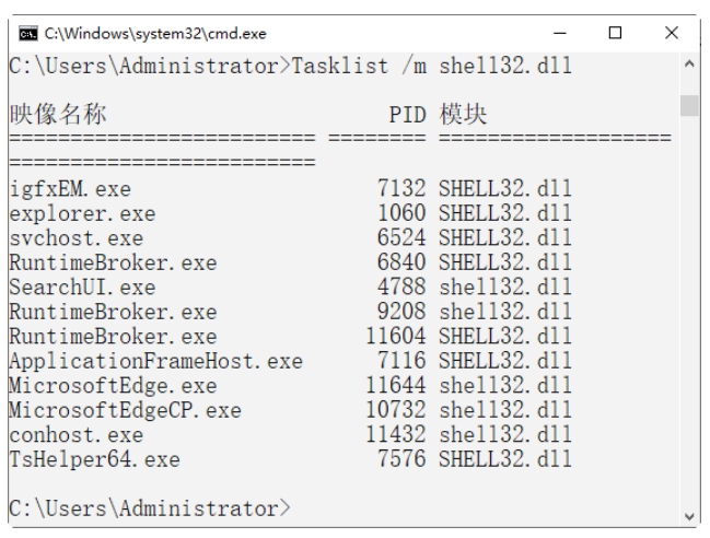 ● /M [module]:列出调用指定的DLL模块的所有进程。如果没有指定模块名,显示每个进程加载的所有模块。