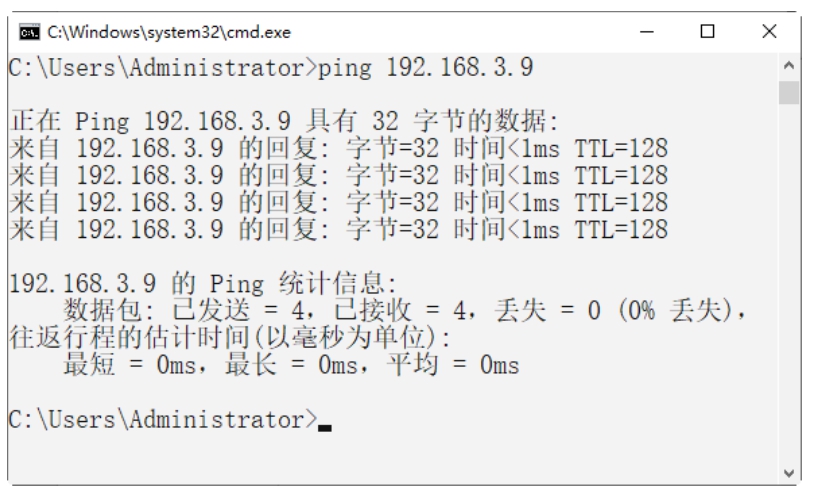 Step 01 使用ping命令来判断计算机的操作系统类型。在“命令提示符”窗口中输入ping 192.168.3.9命令,运行结果如图3-15所示。