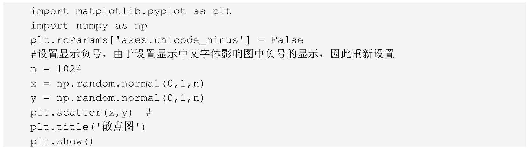 使用plt.scatter()函数可以绘制散点图,代码如下,使用NumPy的random方法随机生成1024个0~1的随机数。