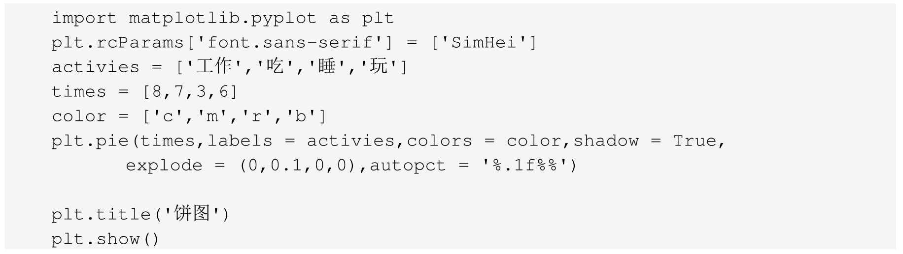 在绘制饼图时,只需给出每个事件所占的时间,会自动计算所占的百分比,代码如下: