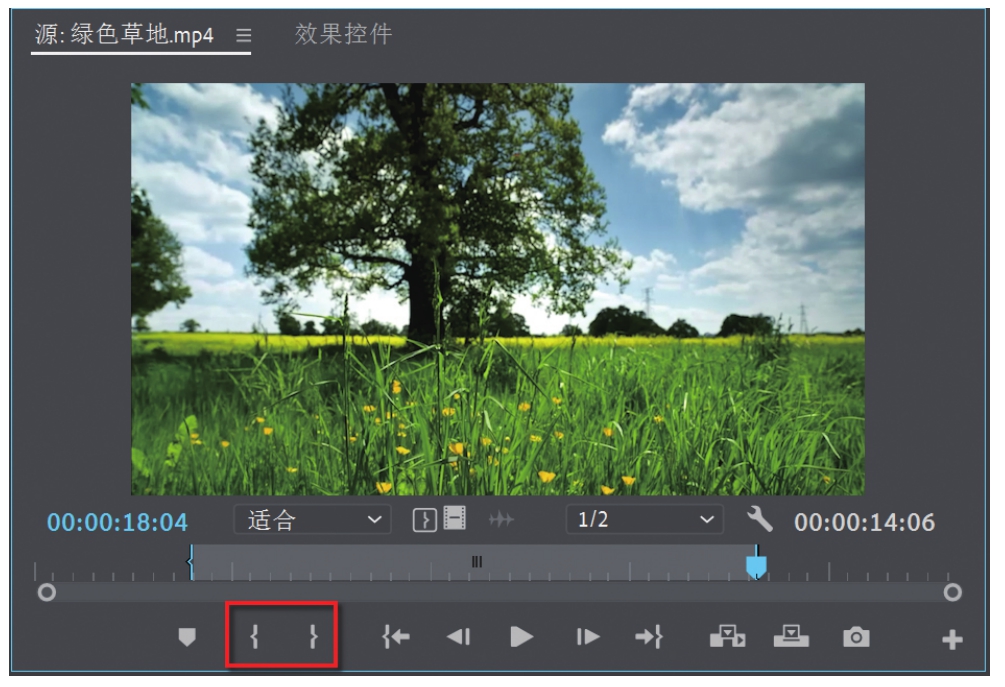 按钮可以为素材设置入点与出点,对素材进行粗剪,如图A03-11所示。