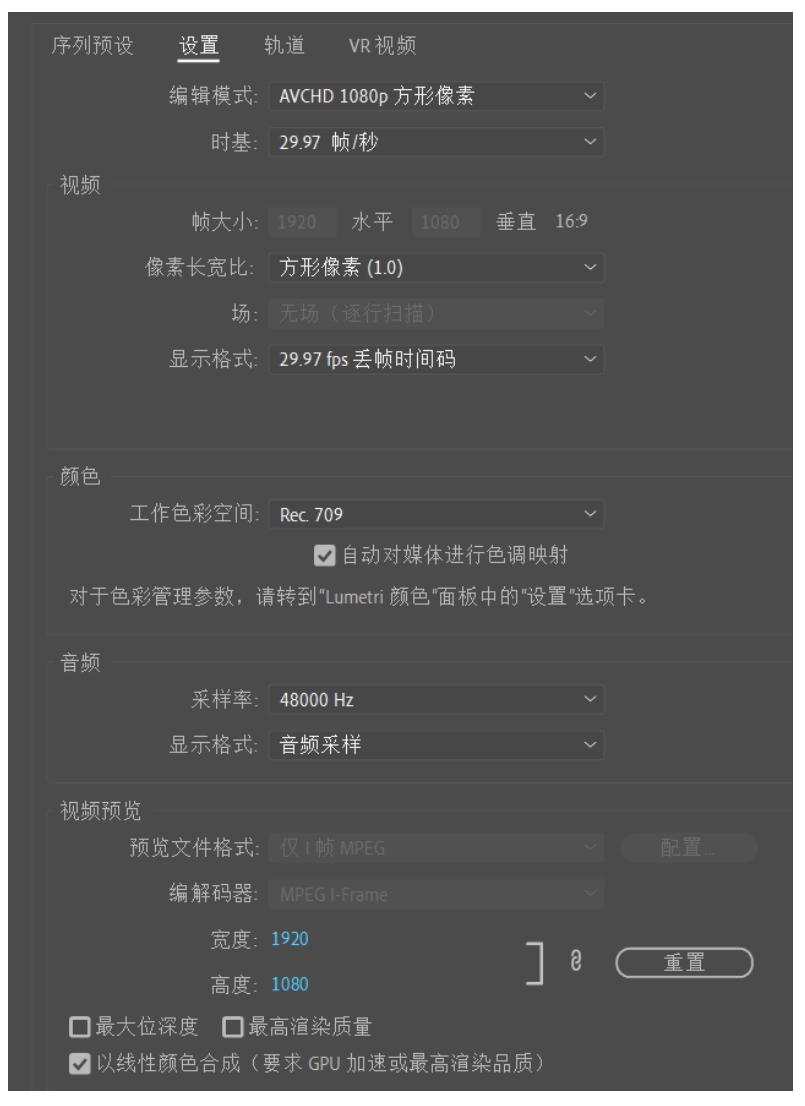 Premiere Pro自动创建匹配源素材的序列,序列的帧大小、帧速率等视频设置与源素材的信息完全匹配。
