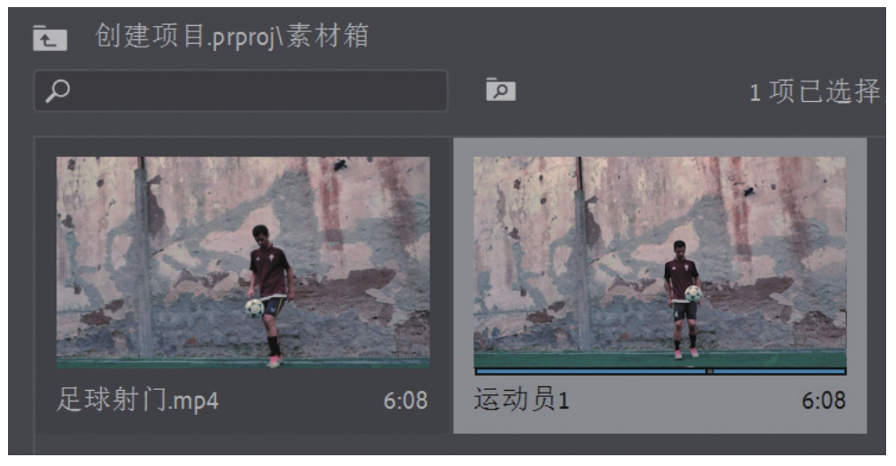 单击【确定】按钮,在【项目】面板中会生成素材“运动员1”,如图A03-15所示。